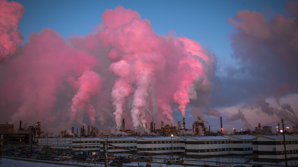 Steam rises from the Snycrude complex in the Athabasca River oil sands area of northeast Alberta. Bitumen, a tarry paste mined from Canada’s oil sands, fueled a boom a decade ago.Darren Hauck/Reveal