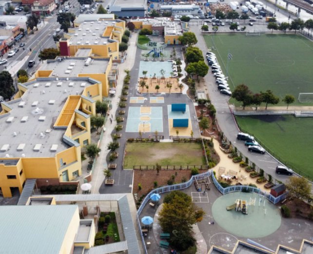The Cesar E. Chavez campus in Oakland, California, greened up by the Trust for Public Land.