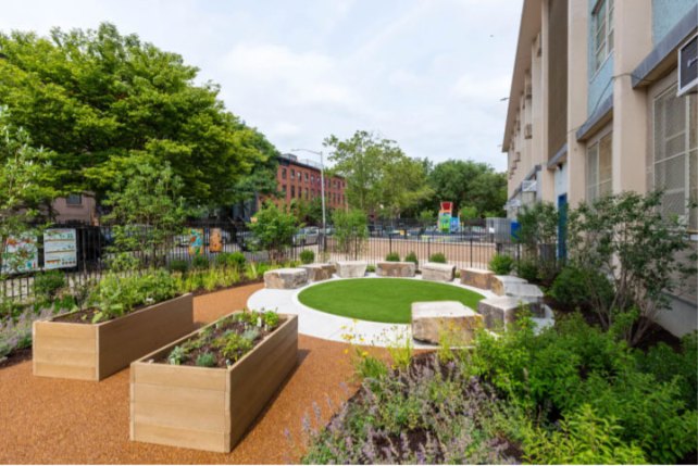 Another of the Trust for Public Land’s greened-up schoolyards—in Brooklyn, New York.