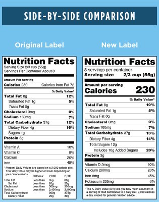 Three quarters of packaged foods contain added sugars, and Americans consume, on average, several times the amount of sugar deemed healthy every day. “Besides helping consumers make more informed choices, the new labels should also spur food manufacturers to add less sugar to their products,” stated CSPI President Michael F. Jacobson. Here’s a side-by-side comparison of the old and new Nutrition Facts Label: