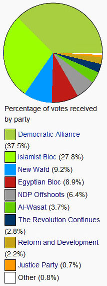 Dave Schuler makes a point about Egyptian politics that’s far from new, but perhaps deserves to be repeated a little more often than it is: most of the population of Egypt doesn’t want a secular government. It wants an Islamic government, as the election results from two years ago show: