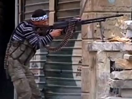 Screenshot: <a href="http://en.wikipedia.org/wiki/File:FSA_Fighter.PNG">VOAvideo</a>, via Wikimedia Commons