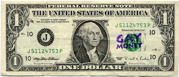 The number of active participants in currency chains cannot be known with certainty. One bill may speak for thousands. Rubber-stamped “Farm Dollars,” “Gay Money,” “Logger’s Money,” “Atheist Money,” or “GUN OWNER$” money, for example, make ambiguous the size of a presumed minority and suggest a legion deserving notice.