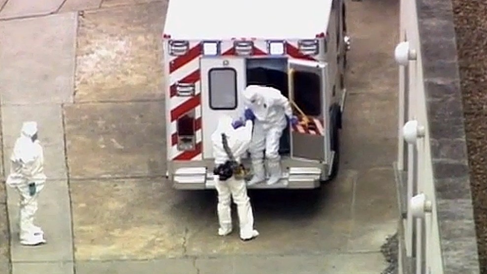 Dr. Kent Brantly arrives at Emory University Hospital on August 2, 2014.WSB-TV Atlanta/AP