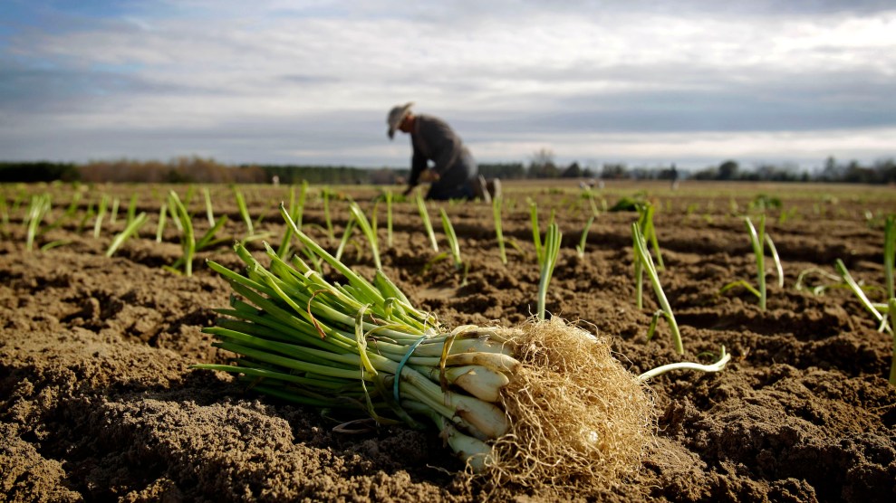 A worker plants Vidalia onions on a farm in Georgia. David Goldman/AP Photo